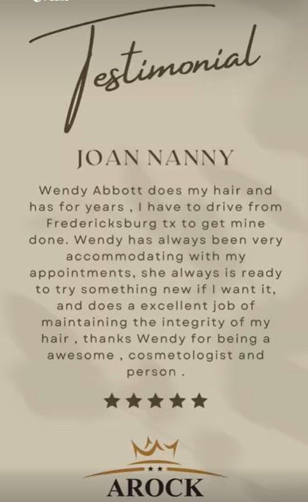 If you're ready to work with a stylist who values lasting impressions and genuine connection, call Wendy Abbott Licensed Cosmetologist in San Angelo to book your next appointment.